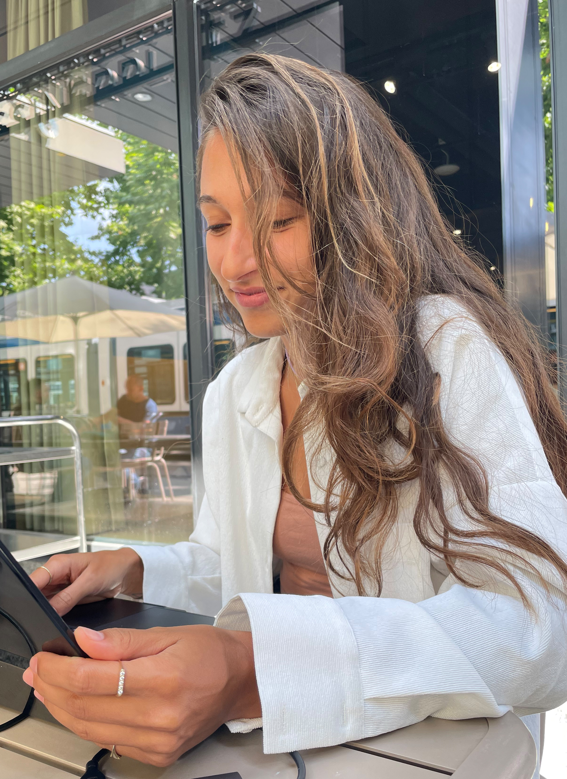 Mindy, the creative director, is the artistic powerhouse behind the brand’s aesthetic. Self-taught and endlessly curious, she immerses herself in graphic design, media creation, and content development, infusing every piece of MINE JEWELRY with her unique vision and expertise.